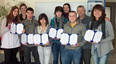 A hétvégén sikeres nyelvvizsgát tettek magyar nyelvből a keresztféléves AFS diákjaink. A LondonStyle nyelviskolában először írásbeli majd szóbeli kérdésekre kellet válaszoniuk a cserediákoknak. Nagy volt az öröm, amikor megkapták a nyelvtudásukat igazoló szép kivitelü bizonyítványt. Gratulálunk diákjainknak. Külön köszönet a Darabont családnak a diákok elszállásolásáért. |