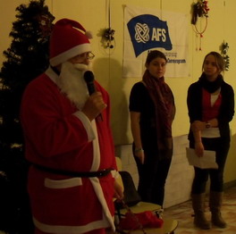 Egy kellemes hétvégét tudhatunk magunk mögött. Több heti kemény munka eredménye képpen körzetünk önkéntesei sikeresen szervezték meg az AFS Mikulás-partyt. Mind a 75 cserediáknak találtak melegszívű fogadócsaládokat , akik a hétvégére gondjukat viselték és alkalmuk volt arra,hogy közelebbről is megismerkedjenek egy másik kultúra képviselőjével. Szombat este 15 nemzet diákjai ,saját készítésű műsorukkal kedveskedtek a családoknak, vendégeknek és egymásnak. Igazi interkultúrális találkozó volt. A Mikulás ajándékkal jutalmazta a 15 AFS körzetből jött fiatalokat. Ez volt a három hónappal ezelőtti érkezésük óta az első közös találkozó. Úgy gondolom, a már hagyománnyá vált Mikulás-party ,mindannyiunk örömére jól sikerült. Köszönöm az önkénteseknek a szervezést, a fogadócsaládoknak a szíveslátást. Külön köszönet körzetünk motorjának (sic) Guti Zsuzsinak a lelkiismeretes munkájáért.
