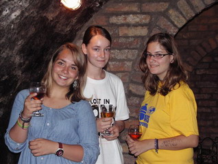 Jól sikerült a Pince-party, amit Csóron, a Kósa család pincéjénél tartottunk. Bár szervezésbeli problémák adódtak, végül is jó hangulatban köszönthettük a visszatért AFS diákjainkat. Csak egy napja jöttek meg,szívük teli az elválás keserédes érzésével, eljöttek erre a találkozóra. Kósa Polett Hong-Kong-ban, Kugler Timi Németországban és Lukács Anna Olaszországban töltött egy csereévet. Jó volt újra látni őket és hallgatni a sok élményt, amitől gazdagabbak lettek. A magyaros ízeket a pince kellemes védelmében egy kis vörösborral öblítettük le. A rövidesen kiutazó diákjaink , önkénteseink és a szülők estig tartó kellemes beszélgetése jó AFS programnak bizonyult. Az esti kalandos buszozás (lekéstük) és a Sörpatikában együtt megnézett, végig szurkolt foci VB bronzmeccse tette teljessé ezt a napot. Köszönjük a Kósa család vendégszeretetét. |